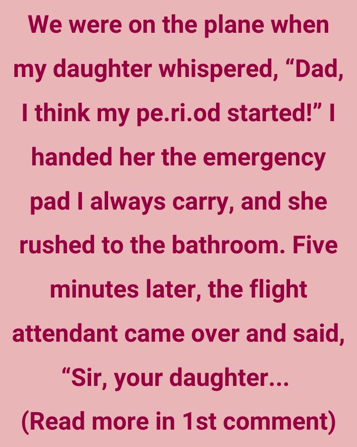 Once, while we were flying, my daughter leaned over and whispered, “Dad, I think I just got my period.” I gave her the emergency pad I always keep with me, and she hurried to the restroom. A few minutes later, the flight attendant came by and said, “Sir, your daughter asked if you have a real pad. She said you gave her a liner.”