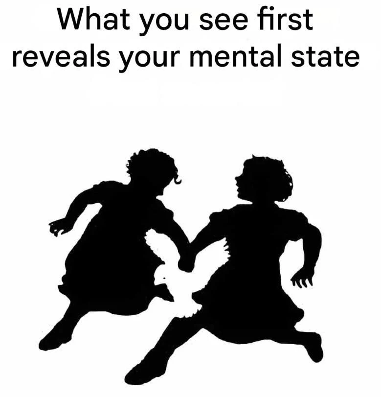 A black and white illustration is circulating online, showing two distinct scenes: a dove flying alone and two girls having fun while running hand in hand. Whichever you notice first can reveal clues about your current mental state.