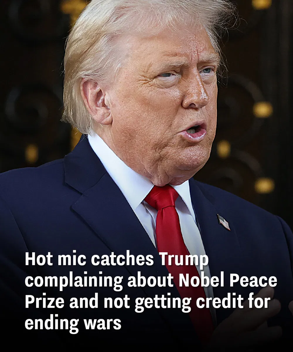 A microphone seemingly caught Donald Trump complaining about the Nobel Peace Prize and suggesting he hasn’t received enough recognition for what he claims were efforts to end multiple wars this year.