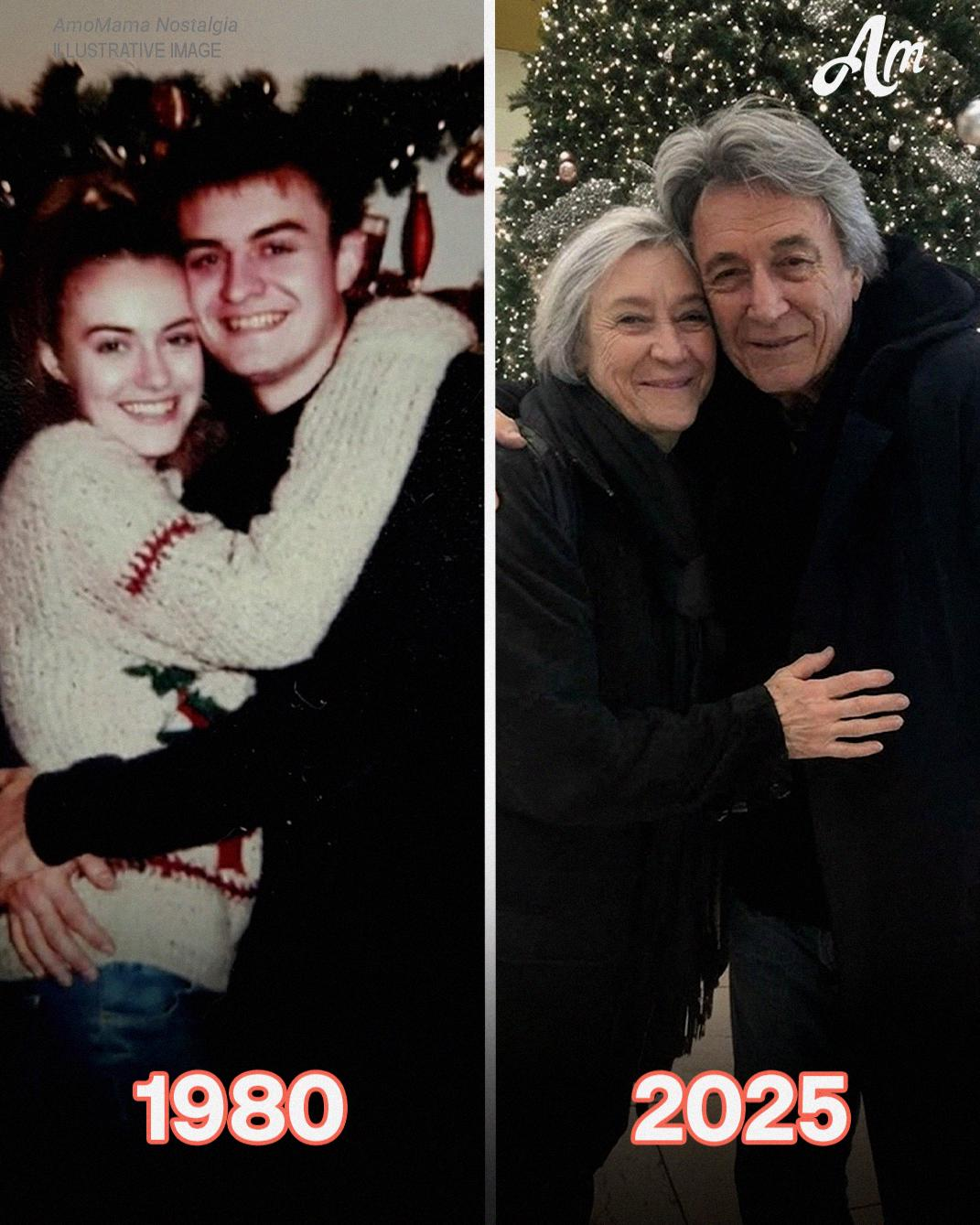 It showed two young people standing close, smiling nervously at the camera. My eyes caught the background first — the ivy-covered brick wall of the college library at my old university. That wall hadn’t changed in decades!