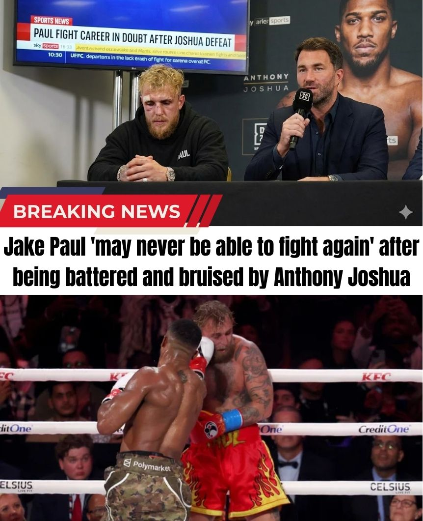 Eddie Hearn has issued a stark warning that Jake Paul’s boxing career could be finished following the devastating double jaw fracture he sustained against Anthony Joshua.