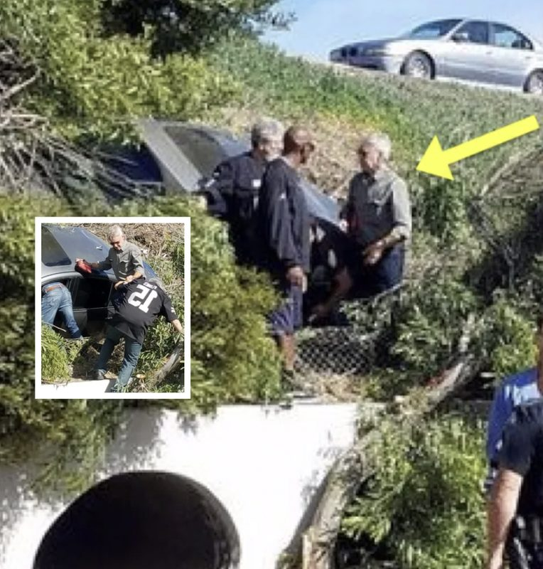 Photos of Ford talking to first responders at the scene began surfacing online. He was reportedly driving behind the woman when she lost control of her vehicle and crashed.
