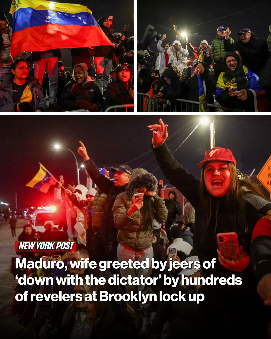 Hundreds of revelers chanted and celebrated outside a Brooklyn lockup as Venezuelan strongman Nicolás Maduro and his wife, Cilia Flores, were hauled inside to face federal narco-terrorism charges.