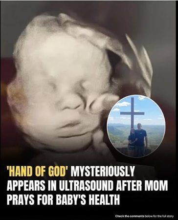 The accompanying black-and-white ultrasound image appears, to Amanda, to show a divine presence: a giant hand seemingly cradling the baby’s head.