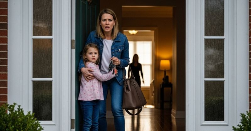 The door swung open. Ethan froze, then forced a smile. “Claire! You should’ve called.”