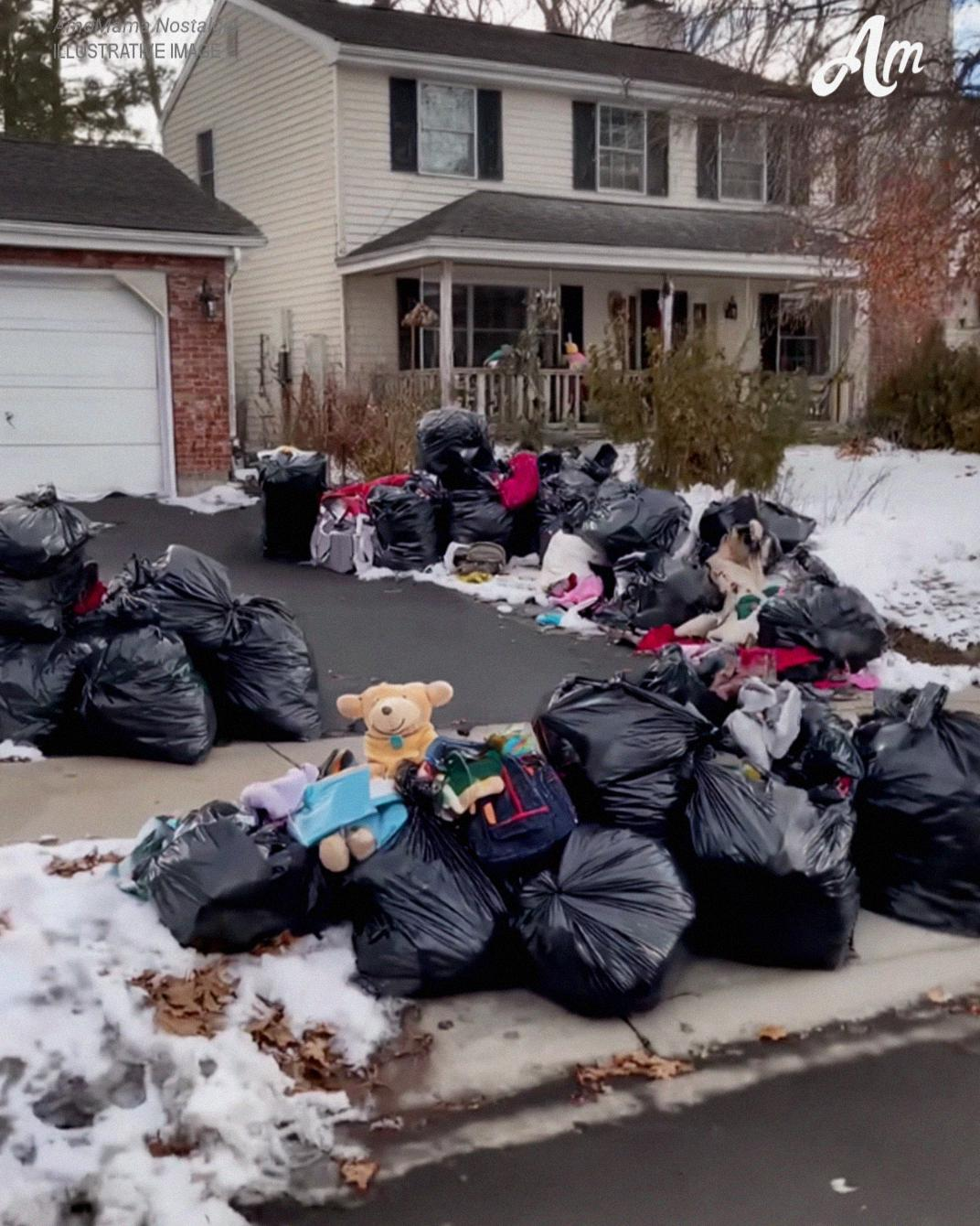 Our belongings were piled on the curb in black trash bags, like discarded garbage awaiting collection. Emma’s favorite blanket was spilling out of one bag, its pink edge fluttering in the breeze.