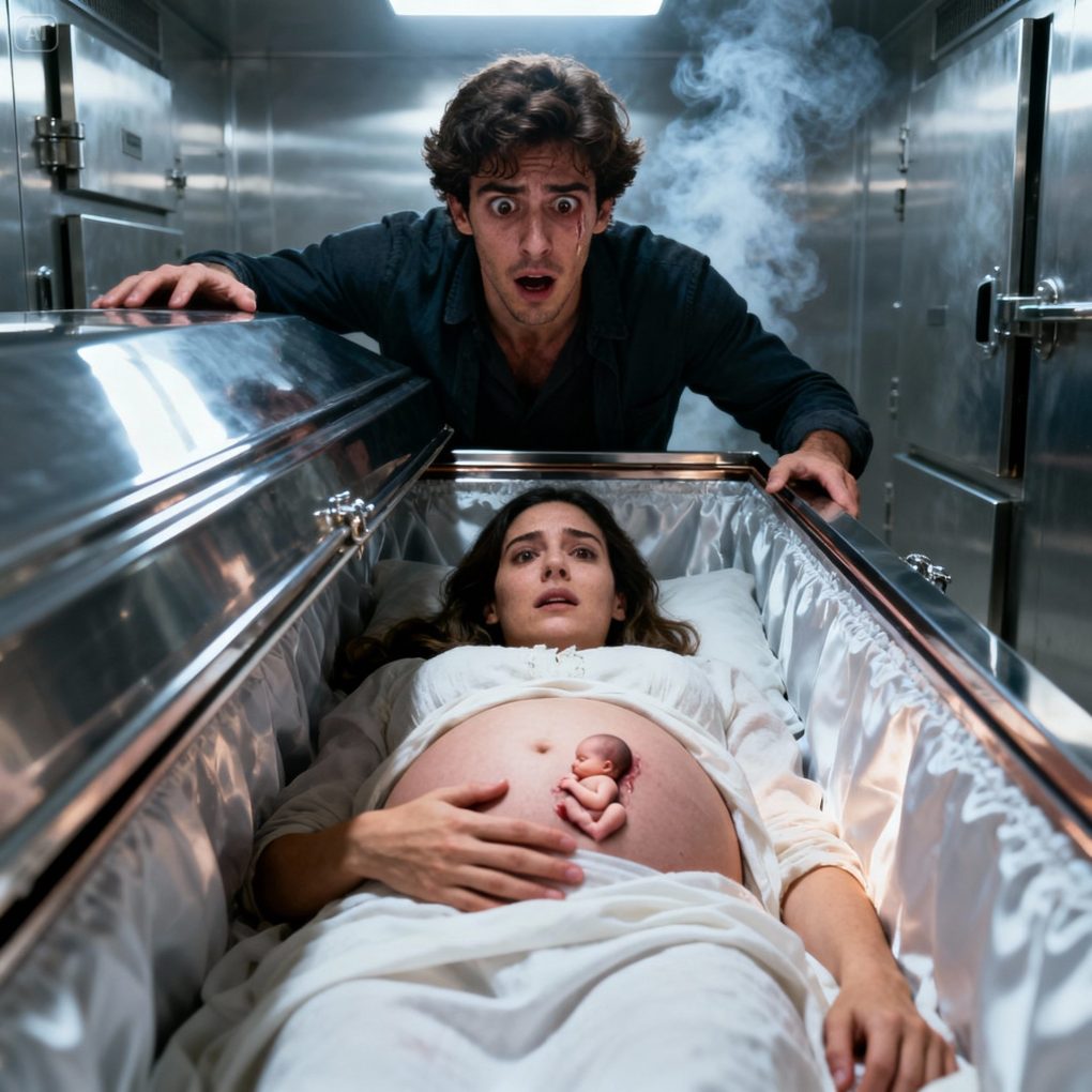 The coffin had been sealed at the hospital, but Álvaro asked—through tears and with a broken voice—if he could open it a few seconds before the final process. The crematorium manager agreed, moved by his request. With trembling hands, Álvaro removed the lid and saw Clara with a serene face, almost as if she were asleep. Her still-swollen belly seemed motionless… until something happened.