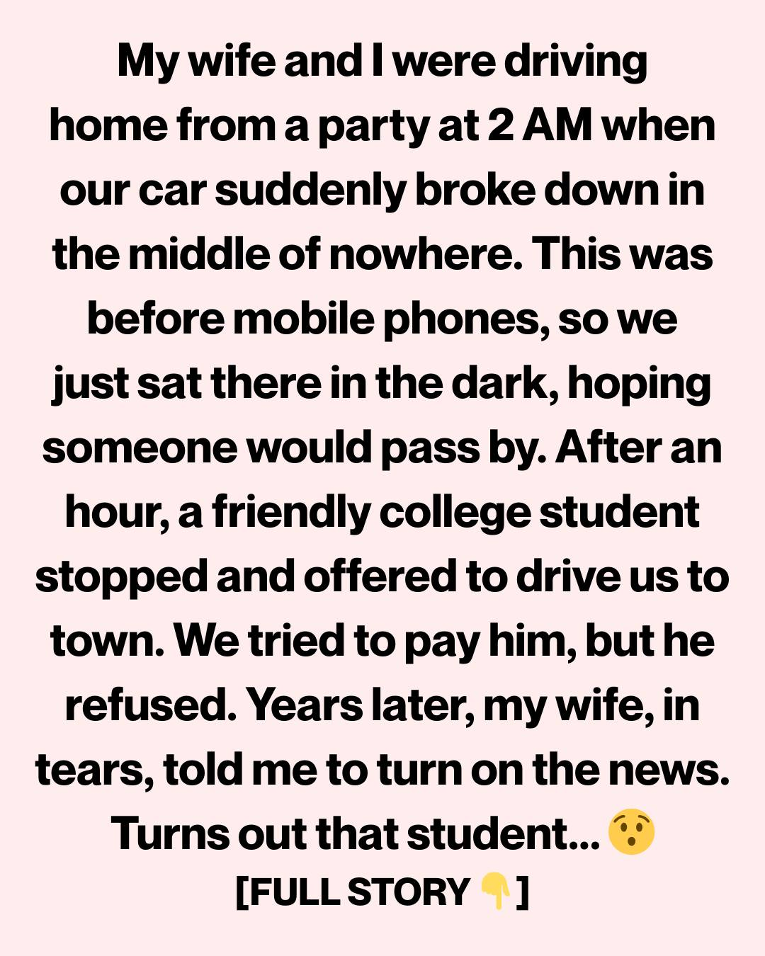 Our Car Broke Down at 2 A.M.—Years Later, the Stranger Who Helped Us Appeared on the News and Left Us Speechless