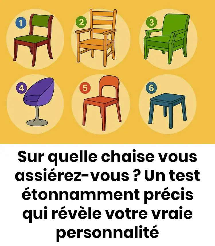Devant une rangée de six chaises toutes différentes, laquelle choisiriez-vous spontanément ? Pas le temps de trop réfléchir : allez-y à l’instinct. Ce petit test visuel, à la fois ludique et intriguant, pourrait bien vous en apprendre davantage sur vous-même que vous ne le pensez. Et attention, les apparences peuvent parfois tromper… Chaise 1 : … Read more