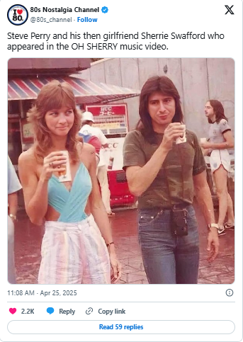 Their relationship inspired one of his most personal songs — “Oh Sherrie,” released in 1984 as part of his solo debut album Street Talk.