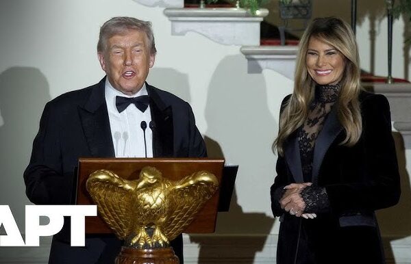 Trump began his speech with customary holiday greetings, wishing those present a “Merry Christmas” and a “Happy Hanukkah.”