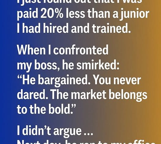 After twelve years of unwavering commitment, I discovered I was making 20% less than a junior employee I had personally hired and trained. When I mentioned it to my boss, he just shrugged with a sly smile: “He negotiated. You didn’t. The market rewards boldness.”